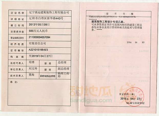 淡遠裝飾是遼寧省著名商標、遼寧省重合同守信用單位,已獲得建筑工程設計乙級資質、裝飾裝修施工二級資質,獲健康安全證書,信譽等級AAA級、已通過環(huán)保體系認證和ISO9001認證。
