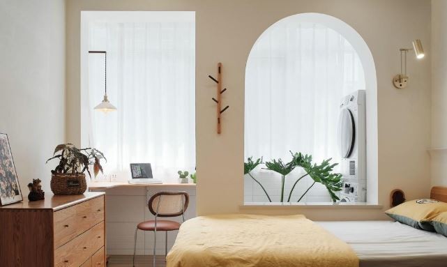 遼陽(yáng)老房翻新的優(yōu)點(diǎn)就是幾乎沒(méi)有公攤,把67平方米的空間進(jìn)行重組,利用空間一分為二和功能對(duì)調(diào)的設(shè)計(jì),得到一個(gè)最優(yōu)的空間布局