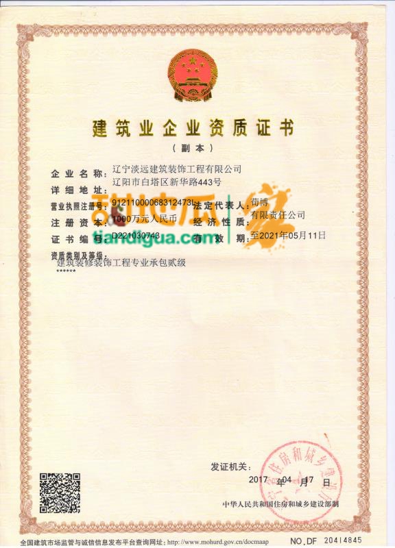 首頁 / 裝修公司 / 遼寧淡遠建筑裝飾工程有限公司